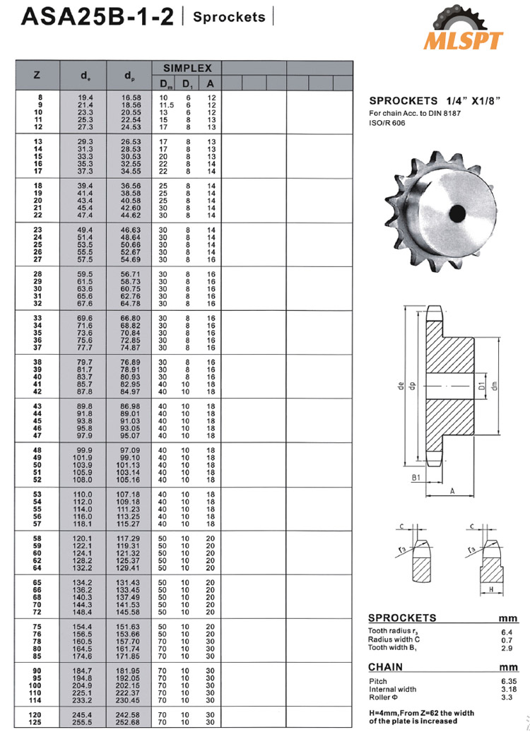 SPROCKETS 1/4” X1/8”